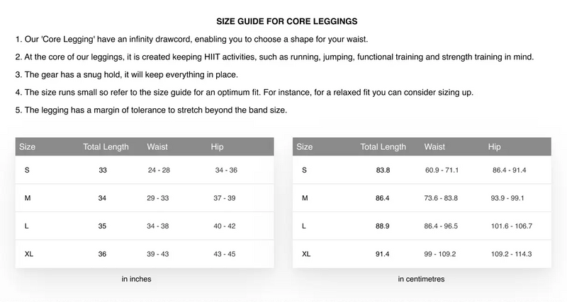 Core Leggings are built for athletes who demand MORE. Featuring reinforced seams and compression zones, they stabilize muscles during explosive movements and high-impact training. The breathable, four-way stretch fabric adapts to your range of motion while maintaining its shape through countless workouts and washes. Ergonomic paneling reduces chafing and enhances comfort during extended sessions. With sweat-resistant technology and our Infinity Drawcord, these leggings keep you focused on performance, not distractions.